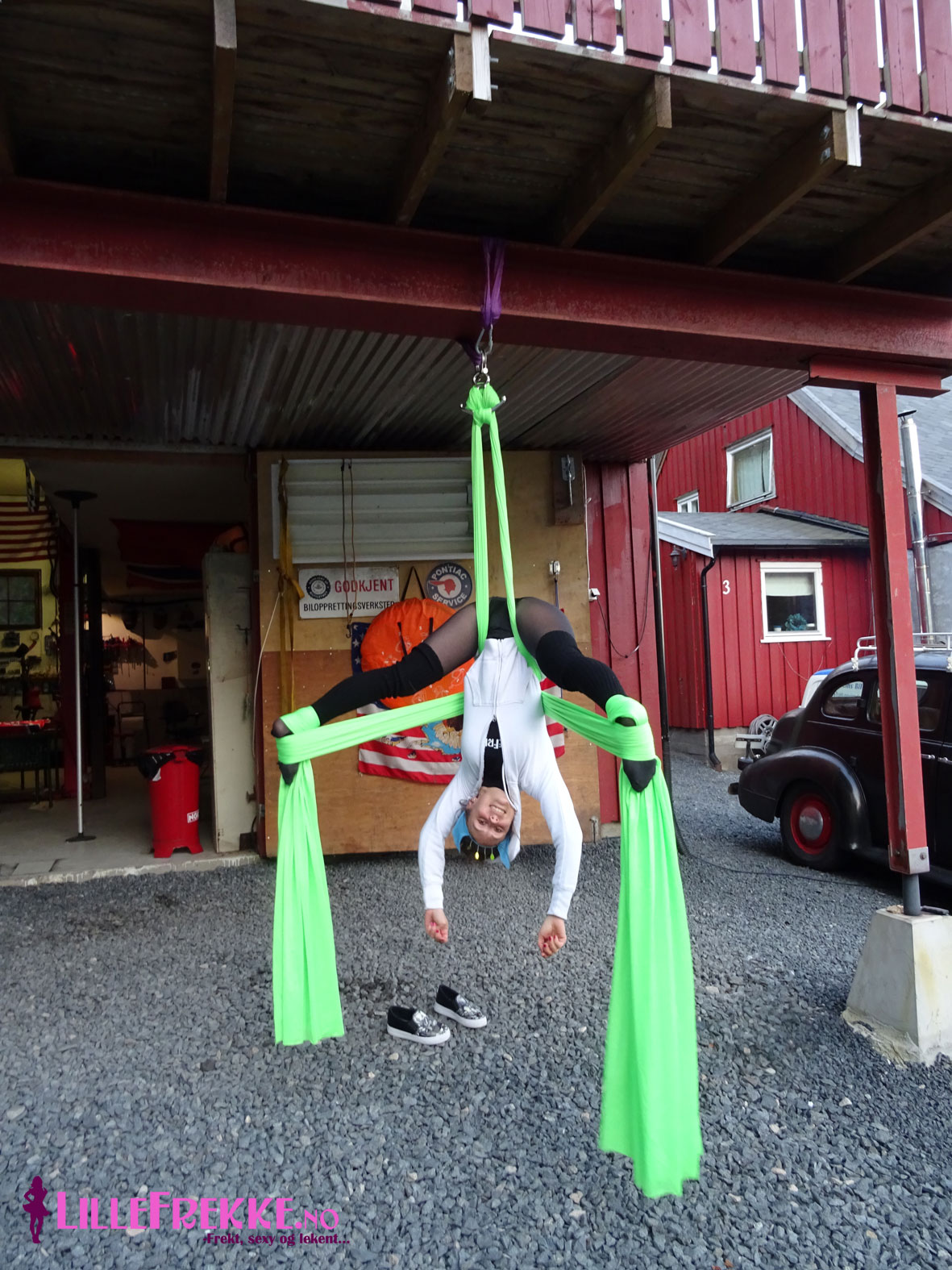 Og når du er på tur med Aina, så kan du rett som det er finne henne dinglende i sine tissue... (Mobilfoto, tatt av SjefsFrekka.)